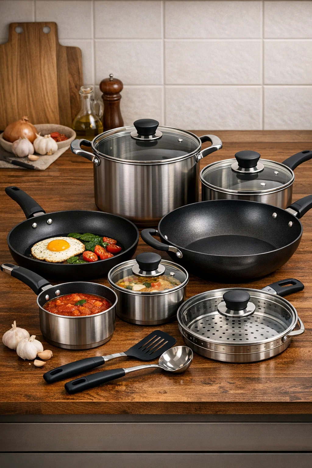 Egy teljes konyhai edénykészlet olyan, mint egy többfunkciós eszköztár, amely különféle "professzionális eszközöket" tartalmaz a különböző alapanyagok és főzési módok kezelésére. Ezzel a komplett készlettel mindent könnyedén elintézhetsz az egyszerű tükörtojásos reggelitől a pazar családi vacsoráig.