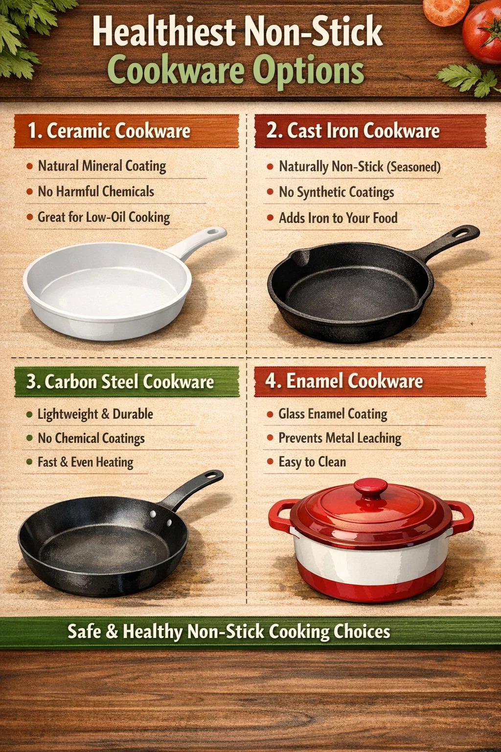 Az alábbiakban részletesen bemutatjuk a tapadásmentes edénytípusokat, amelyeket széles körben a legegészségesebbnek tartanak: